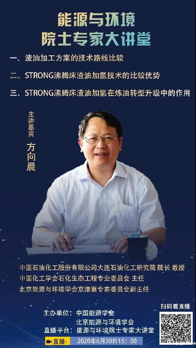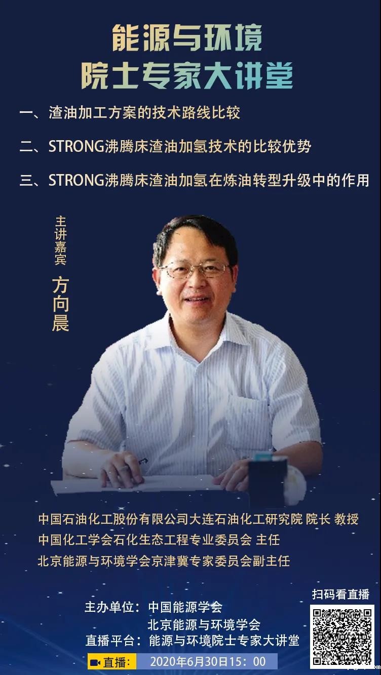 直播主题:STRONG沸腾床渣油加氢——一种清洁高效的重渣油转化技术 演讲嘉宾:方向晨 教授 中国石油化工股份有限公司大连石油化工研究院院长 直播时间:6月30日 下午15:00 中国石油化工股份有限公司大连石油化工研究院院长、中国化工学会石化生态工程专业委员会主任、北京能源与环境学会京津冀专家委员会副主任——方向晨教授将与您面对面一一解读,为您带来一场深刻而精彩,独到又多样,轻松且有趣的视听盛宴。