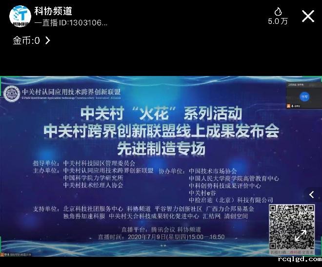 2020年7月9日下午,中关村跨界创新联盟与中国科学院力学研究所在中关村科技园区管委会的指导下,在北京科技社团服务中心等单位的支持下,从企业技术需求出发,联合中关村技术经理人协会等多家单位,成功举办了中关村“火花”活动—中关村跨界创新联盟线上成果发布会—先进制造专场。本次活动发布了中科院力学所先进制造领域的4项待转化的成果,来自政府部门(包括经信局、科技局、招商局、科协、科委等)、企业负责人、投资机构、技术转移服务机构等130多人通过腾讯会议参与了直播互动活动,科协频道新浪微博直播平台观看人次累计达到5万。