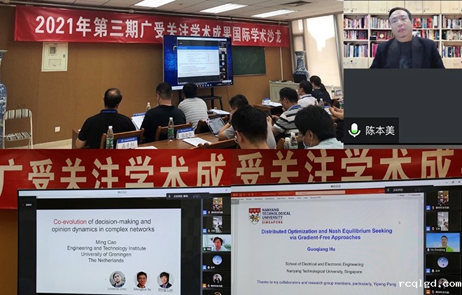香港中文大学/新加坡国立大学陈本美教授、荷兰格罗宁根大学曹明教授、新加坡南洋理工大学胡国强教授、北京理工大学孙健教授、东南大学虞文武教授、北京工业大学韩红桂教授、清华大学黄高助理教授等8位学者分别做了题为“执行器受限的异构多智能体系统的协同与防撞控制”“Co-evolution of decision-making and opinion dynamics in complex networks”“Distributed Optimization and Nash Equilibrium Seeking via Gradient-Free Approaches”“网络化系统安全控制研究进展”“基于群体智能的智能交通调度研究”“城市污水处理过程多目标协同优化控制”“Dynamic Deep Neural Networks”的特邀专题报告。线下和线上的参会代表围绕报告内容开展了广泛深入的交流,对新一代人工智能背景下多智能体博弈优化与控制存在的难点以及未来可能的研究热点交换意见,探讨合作。