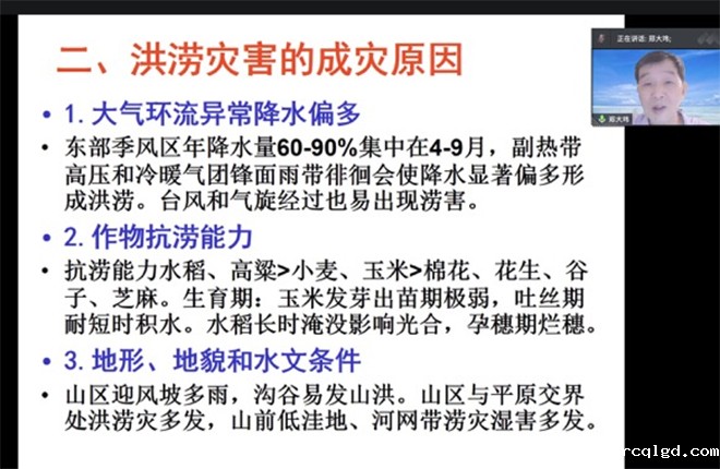 农业部综合防灾减灾专家指导组顾问、北京市防灾减灾专业智库基地首席专家郑大玮作“科学防御洪涝灾害”报告,讲述了洪涝的概念与类型、洪涝灾害的历史成因及科学预防的对策。北京市水文地质工程地质大队科普讲师刘云飞作“初始地质灾害”科普报告,以详实的案例讲述了汛期北京易发生地质灾害的时间、区县及防范措施。北京减灾协会、北京生态修复学会会员、科普志愿者近70人,参加了线上大讲堂。