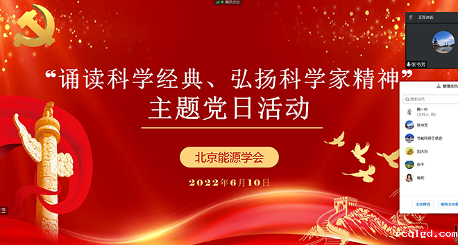 6月10日,北京能源学会通过腾讯会议在线开展了“诵读科学经典、弘扬科学家精神”主题党日活动。本次活动由北京能源学会常务副会长刘大为主持,北京能源学会秘书长于承迎,副会长孙干、李忠武,办公室主任张书芳,咨询部韩一叶、李安琪等参加了活动。