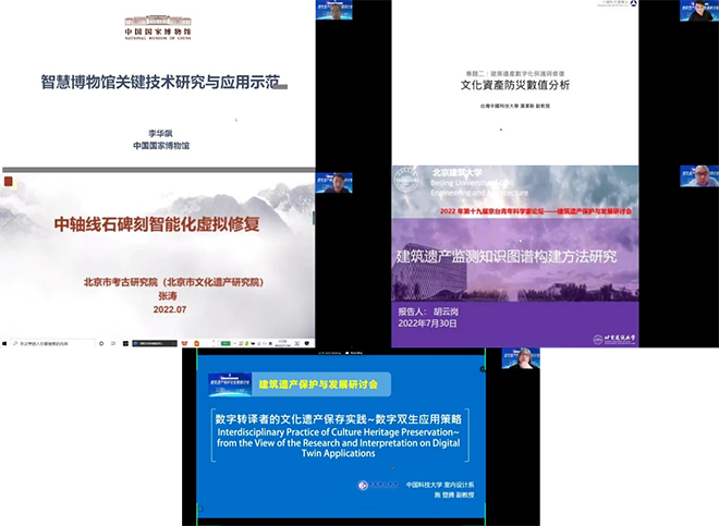 在专题二“建筑遗产数字化保护与修复”中,中国国家博物馆数据管理与分析中心主任李华飙、北京建筑大学测绘学院胡云岗副教授、北京市考古研究院(北京市文化遗产研究院)副研究员张涛、台科大副教授施登腾、台科大副教授汤洁新等专家,分别以《智慧博物馆关键技术研究与应用示范》、《建筑遗产监测知识图谱构建方法研究》、《中轴线石碑刻智能化虚拟修复》、《数字转译者的文化遗产保存实践——数字双生应用策略》、《文化资产防灾数质分析》为主题分享报告。