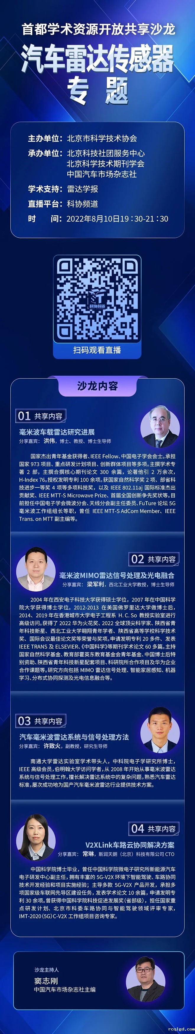首都学术资源开放共享沙龙——汽车雷达传感器专题将于8月10日19:30—21:30进行,科协频道将全程直播,敬请关注!